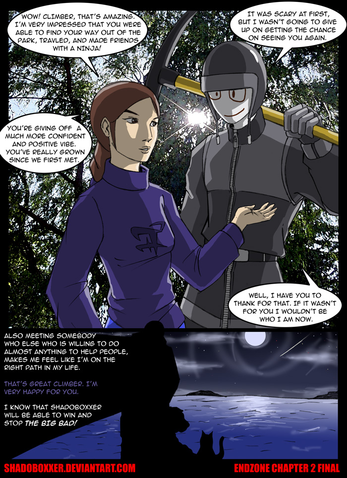 | ENDZONE: BATTLES Chapter 3 "The Fight That Never Was" This Chapter is more of a "What If..." because Shado lost in the second round to The Climber. Watch the movie here to see how Shadoboxxer lost to Climber. Round Two: Between Light and Shadow